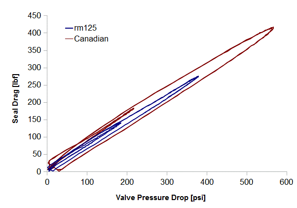 Comparing the seal drag for the Canadian valve to the rm125 test you sent earlier shows that both valves have about the same drag. The Canadian valve might be a little higher.