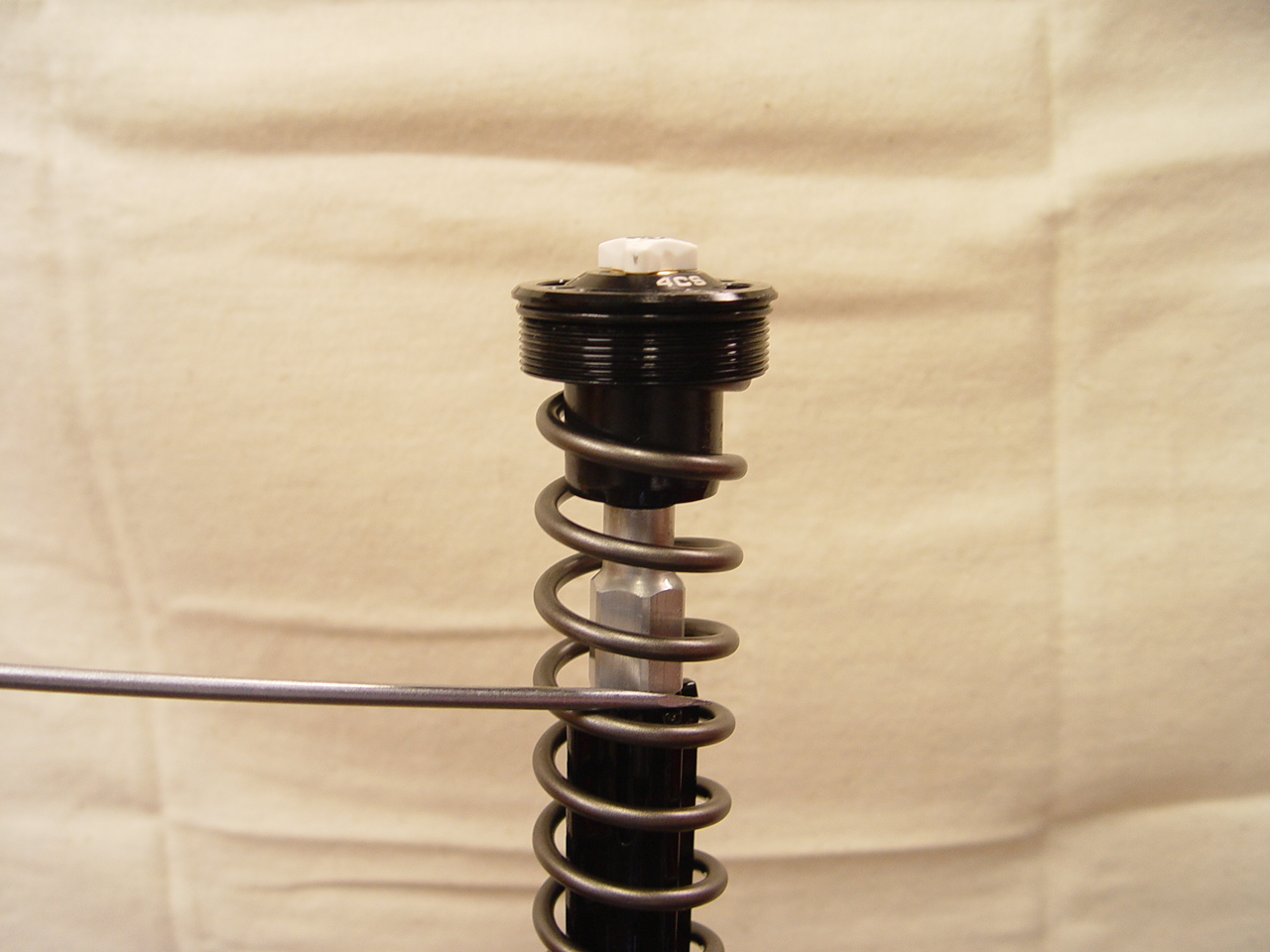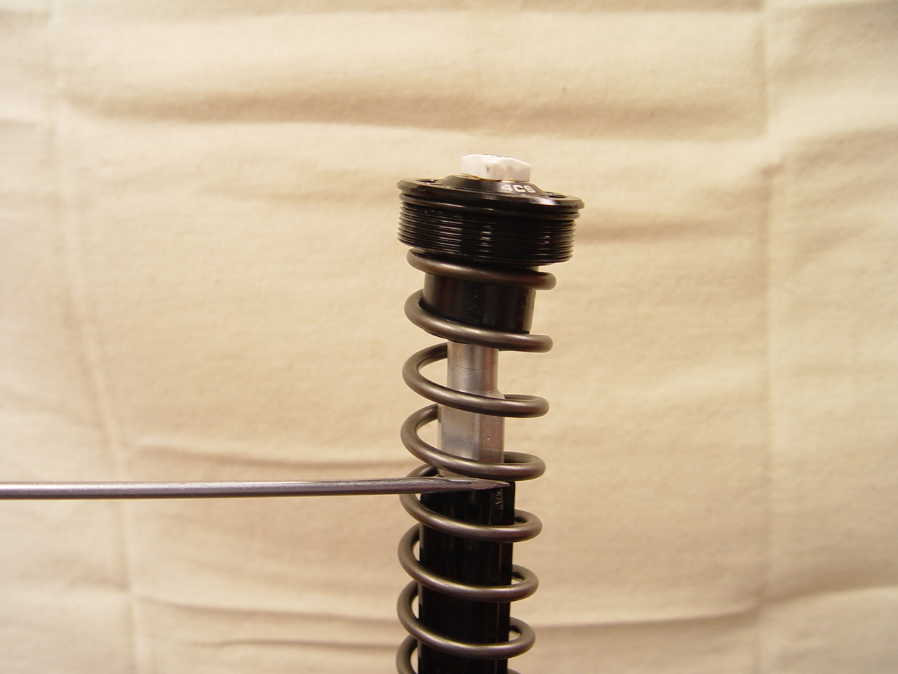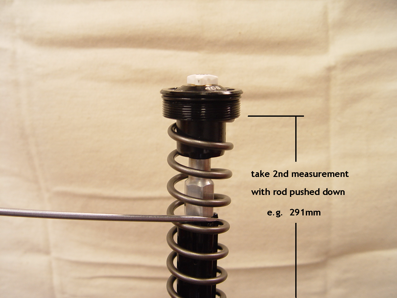 With the 8mm rod pushed down, take second measurement from top of alum tube to bottom of cap. Subtract from first measurement. The difference is preload. --> For example, 294 - 289 = 5mm prel.